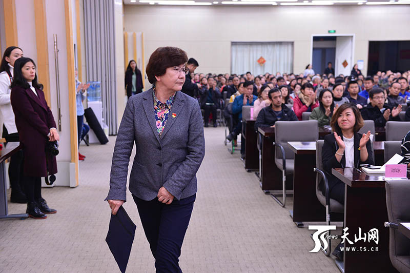 从北京回来后的热先古力 · 托乎提,一直在研读十九大报告,将报告中的文字变成通俗的语言和鲜活的事例,讲给百姓听,这也是近期以来她的一项重点工作。热先古力 · 托乎提说:“今天是我回到乌鲁木齐市的第十七次宣讲,演讲稿已经准备了五、六个版本,针对不同的人群用不同的形式,有进机关的、有进部队的、有进社区的、有进企业的、有进学校的、还有进医院的,我也是在不断学习中。刚开始的时候,一天三次宣讲,年级大了,讲到后面都发不出声音来了。”