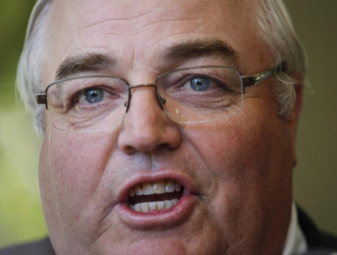 温斯顿·布莱克莫尔因在一个原教旨主义宗教社区中实行多妻制而被定有罪。2017年7月24日他在不列颠哥伦比亚省克兰布鲁克市法庭外接受记者采访(加拿大新闻社照片/ Jeff McIntosh)